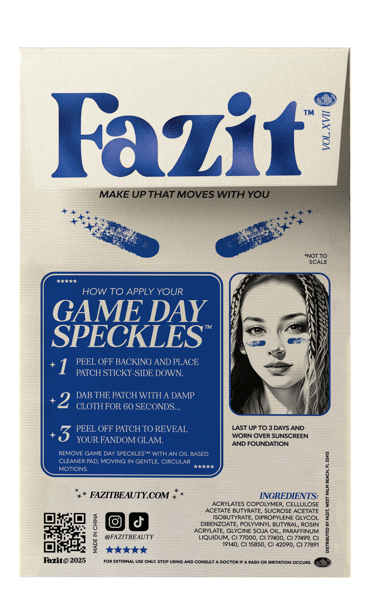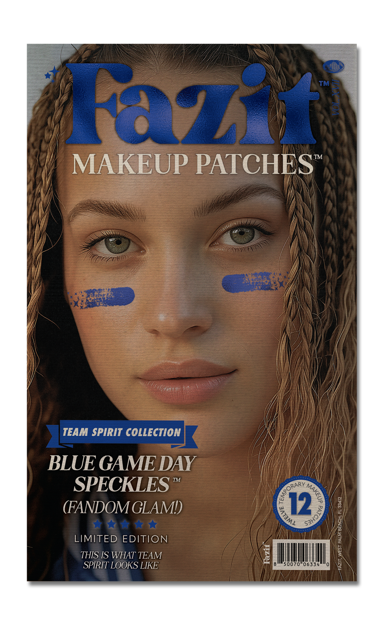 Game day just got an upgrade. Fazit’s Blue Game Day Makeup Patches let you show off your team pride with effortless, long-lasting sparkle. Whether you’re cheering from the stands or tailgating with friends, these sweat-proof, waterproof, and smudge-resistant speckles stay put from kickoff to the final whistle. Available in team or school colors, they’re the ultimate game-day essential. Just press, pat, and peel for an instant fandom-worthy look. No mess, no hassle, just bold, spirited sparkle that makes your loyalty shine. Rep Your Colors. Cheer Louder. Sparkle Harder. 12 patches included in each pack.